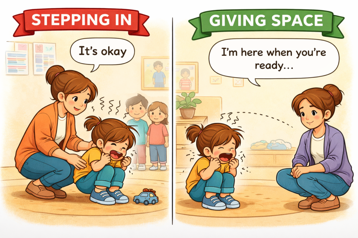 The intention is still there. We are trying to help, to guide, to support. But the experience for the child shifts. Instead of being given the space to notice what is happening within them, the moment is redirected before that awareness has a chance to form. And over time, what are we showing children about those moments? That they should move past them quickly? That the feeling itself is something to fix, rather than something to notice?