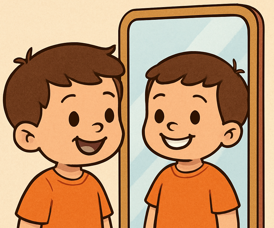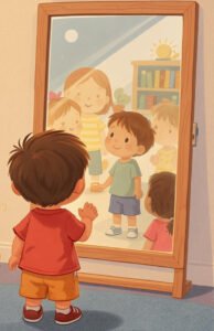 Goal: Help children visually recognize their own body and movements using mirrors.