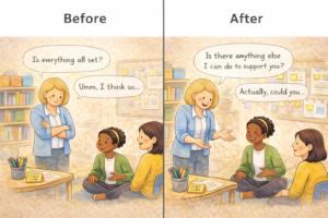 I had to recognise that my own competence was unintentionally limiting other people’s growth. If I always stepped in, others didn’t get the chance to struggle through and build their own rhythm. That didn’t mean I suddenly stopped supporting people and just watched the struggle unfold like some sort of professional development experiment. It meant the support looked different.